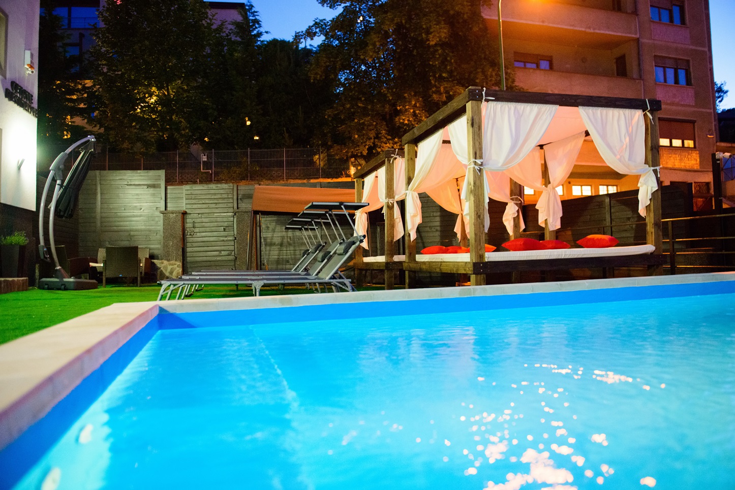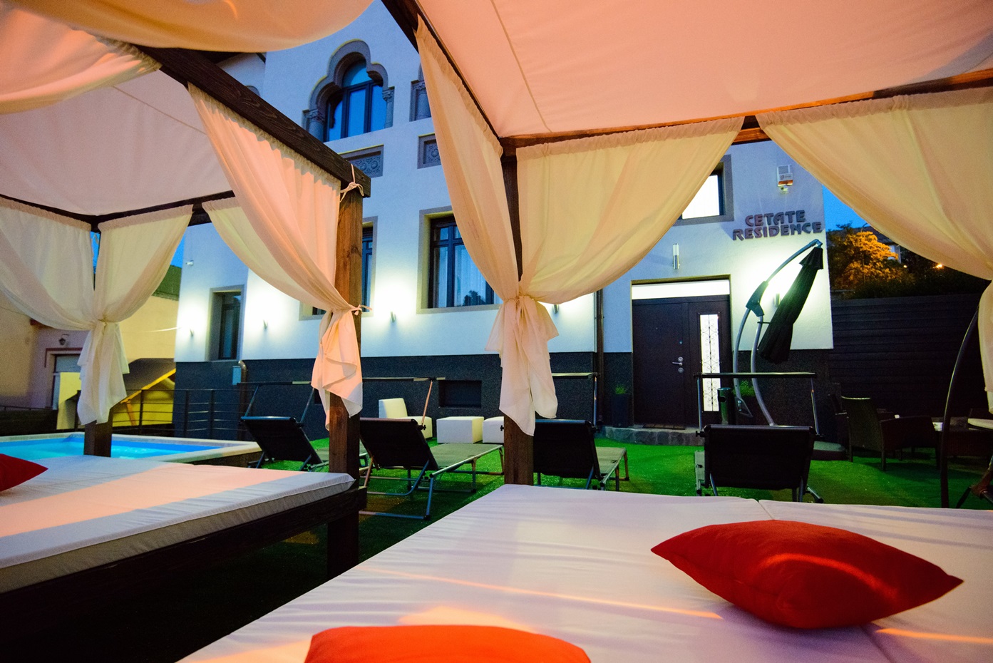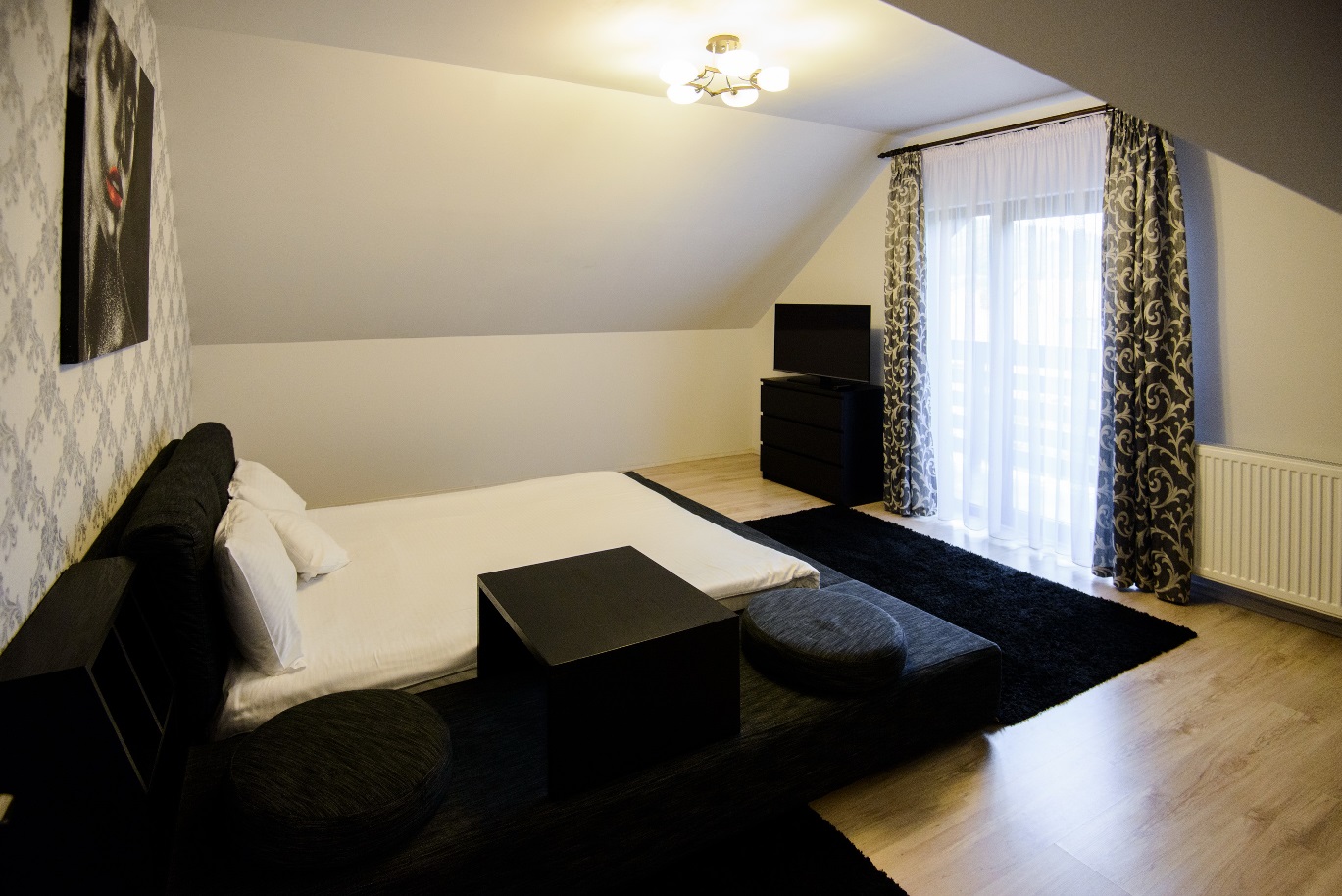 Noi am fost cazati in camera 4 (garsoniera). Camera are balcon si poti sta linistit sa privesti de sus orasul. Totul curat, pat imens, liniste in camera. Dimineata ne trezeam cu ciripitul pasarilor. In curte este un foisor mare, gratar, piscina, sezlong si hamac dublu.